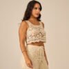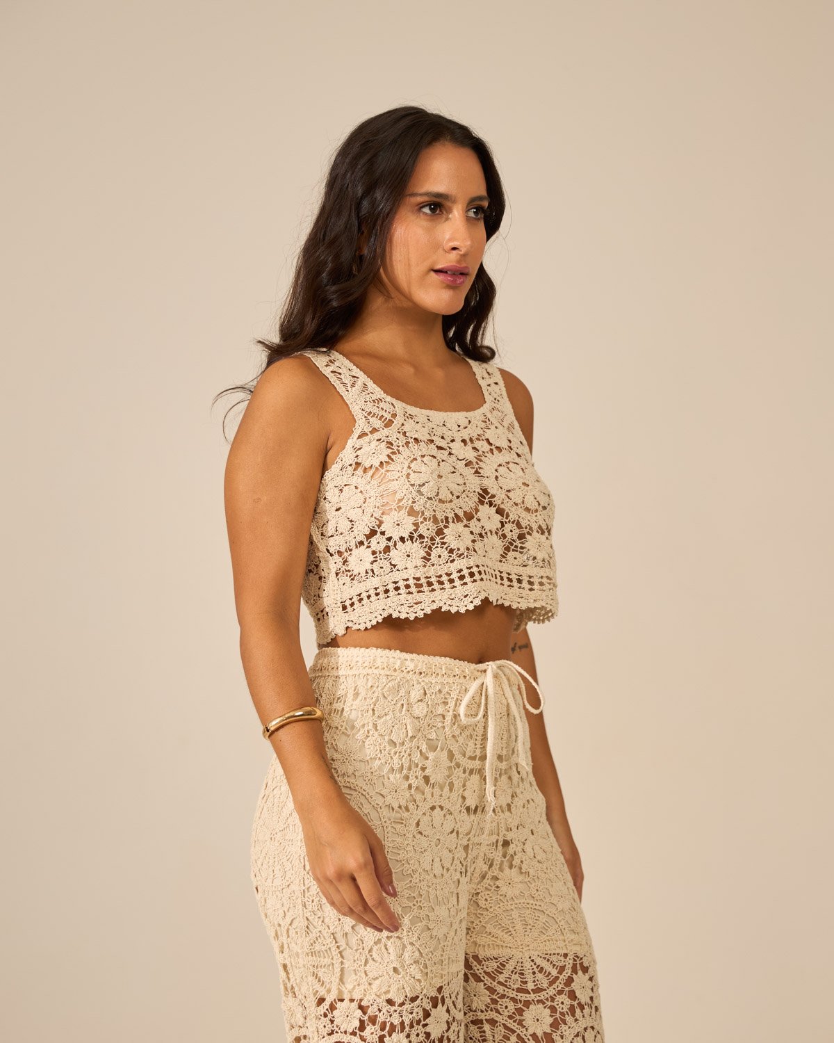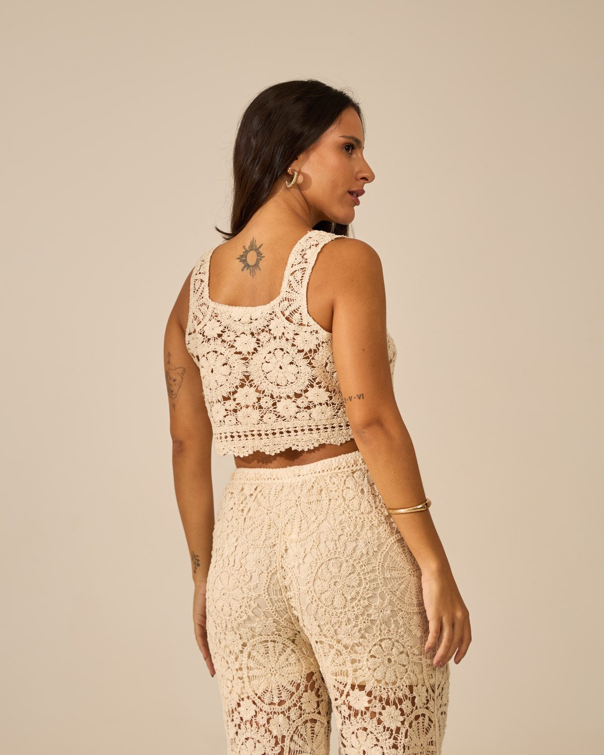 Saia midi com forro medio em croche com amarração frontal, Top faixa sem forro em crochê