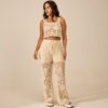 Conjunto composto por saia curta com franjas com forro e cropped com alças grosas com forro Composição: 100% Algodão Modelo veste : U