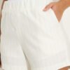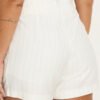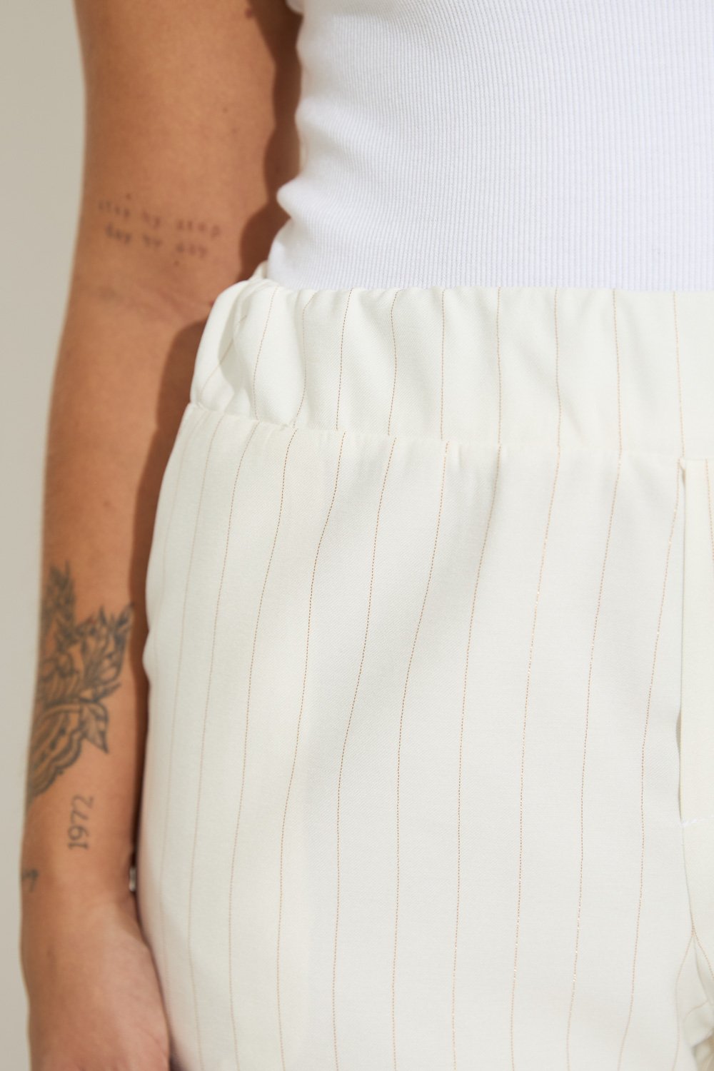 Short curto com forro em cintura alta, com bolso faca nas laterais e com ziper nas costas.